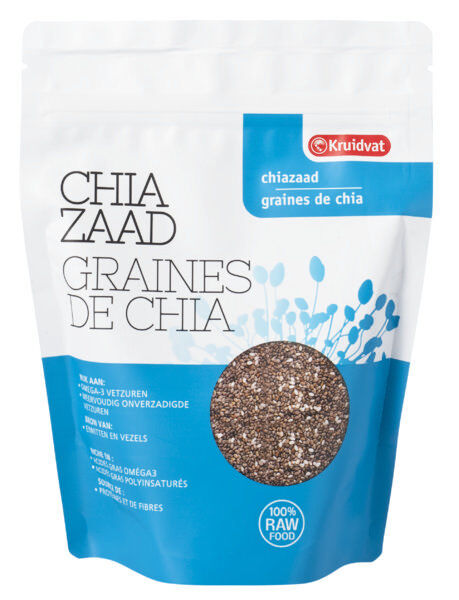 Chiazaad is rijk aan Omega-3 vetzuren en meervoudig onverzadigde vetzuren. Bovendien is chiazaad een bron van eiwitten en vezels. Het kan tot wel 7x haar gewicht aan water opnemen. Voeg het toe aan heerlijke ontbijtgranen, brood, notenmix of een salade.