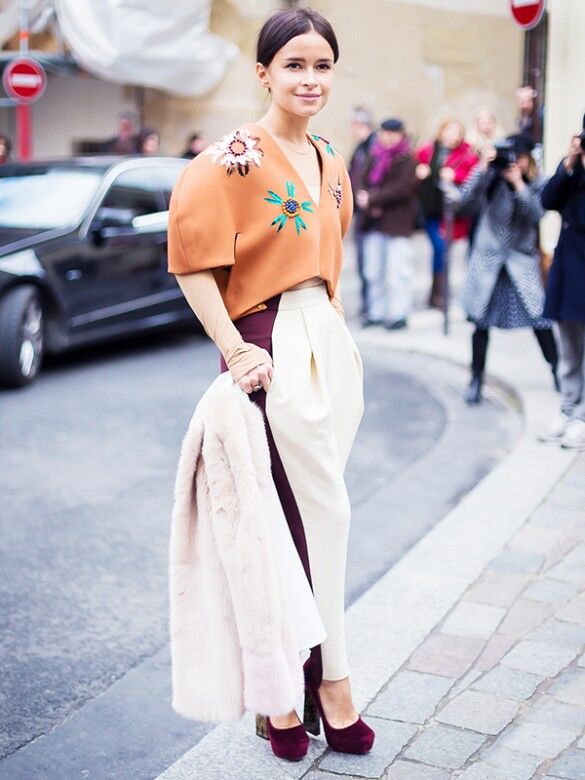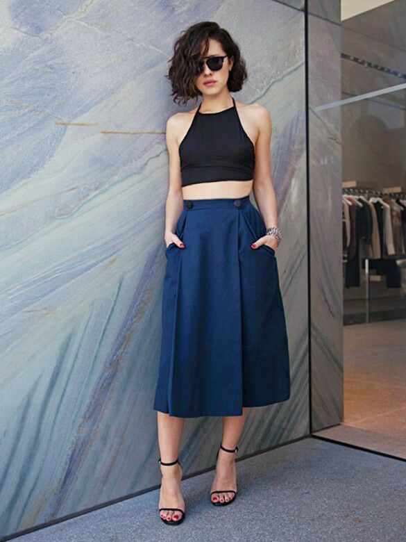 Als iemand ons laat zien hoe kortere vrouwen een crop top dragen is het editor Miroslava Duma. Miroslava combineert haar langere broeken en rokken met een crop top die een iets kortere voorkant heeft. Door de dip aan de achterkant en de voorkant die een stukje buik laat zien geeft het de illusie dat een lichaam langer is. Als je al helemaal langer wilt lijken kan je je top met een broek met verticale lijnen en hoge hakken dragen.