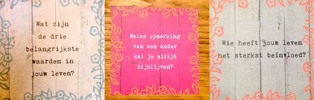 Hoe je het aanpakt is aan jou, ga je ieder familielid af of gooi je wat vragen in de groep... Je maakt je eigen regels. NB! Niet toe aan zoveel openheid? Je kunt de vragen ook voor jezelf beantwoorden voor de nodige (zelf)reflectie...