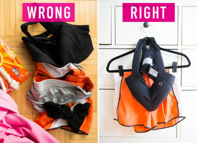 9. Je gooit je natte sportkleren meteen in de wasmand