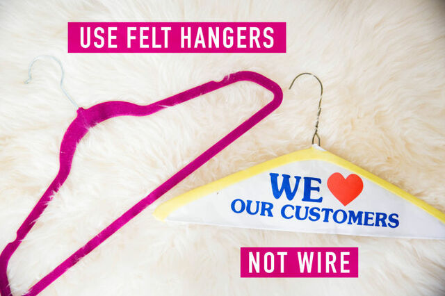 Hangers van ijzerdraad zijn niet gemaakt voor de wat zwaardere stoffen en zorgen ervoor dat het item zijn oorspronkelijke model verliest. Kies daarom liever voor hangers van vilt, die laaten ook geen tekens achter in de kleding. Ideaal voor blousjes van dunne, silky stoffen.