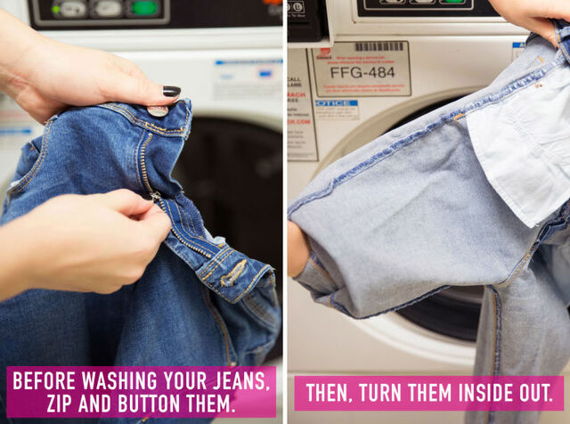 Was je jeans altijd binnenstebuiten en doe altijd de knoop en/of rits dicht. Dit is helemaal belangrijk met jeans die een mooie wassing hebben, door de jeans binnenstebuiten te wassen blijft deze langer mooi.
