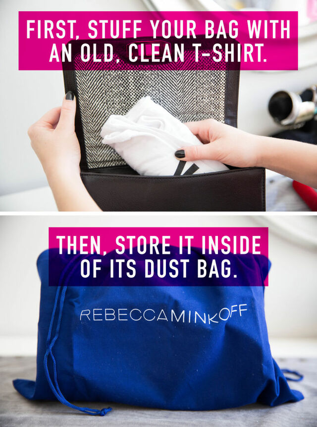 Vul je tassen die je niet gebruikt met oude T-shirts zodat de vorm langer mooi blijft en bewaar ze in speciale stofzakken zodat ook het textiel of leer mooier blijft.