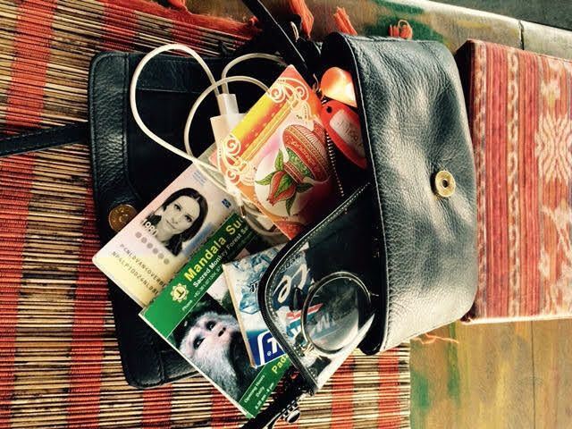 Normaal is mijn tas een grote chaos die ik nooit opruim en waarin ik dingen serieus niet meer terug kan vinden. Toevallig ben ik nu op Bali en voor vakantie pak ik altijd een klein tasje met alleen het hoognodige. Hij is toevallig dus super opgeruimd nu.