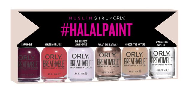 Chief of staff van MuslimGirl.com ontdekte deze nagellaklijn toen ze ging trouwen en besloot contact met Orly op te nemen voor een samenwerking. Het resultaat? De #HalalPaint collectie bestaande uit zes kleuren. De lijn heeft toepasselijke namen zoals 'Ig-Noor the Haters' en 'The Perfect Amani-cure'.