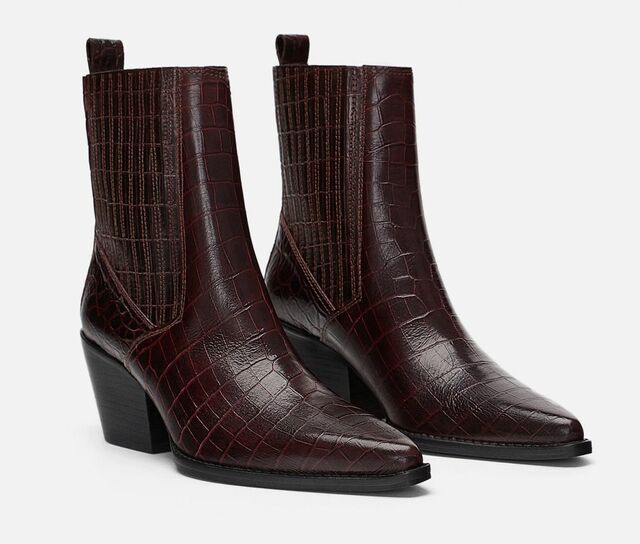 Zara leren enkellaarsjes met hak en print bij Zara.com