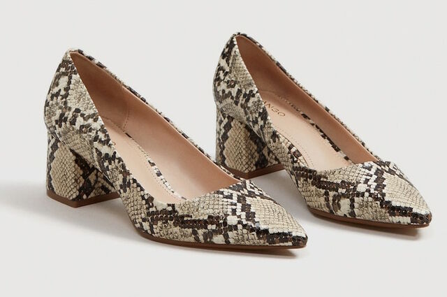 Mango schoenen met hakken in slangenleerlook bij Mango.com