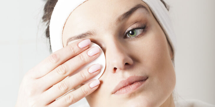 Stap 2: Verwijder oogmake-up door watjes in oogmake-upremover te drenken en deze even op de ogen te leggen. Bedenk je dat de huid rond de ogen heel erg dun en daardoor kwetsbaar is. Wrijven is helemaal niet nodig, want wanneer je de watjes even laat zitten en er vervolgens afhaalt, heb je zo goed als alle make-up verwijderd.