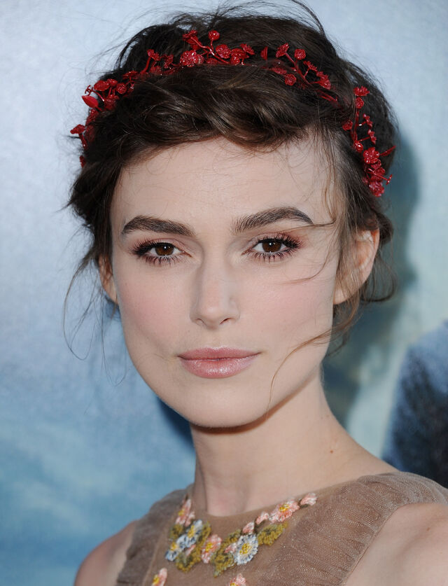 Een prachtige alternatief voor een hoed; een bloemendiadeem zoals Keira Knightley hier draagt
