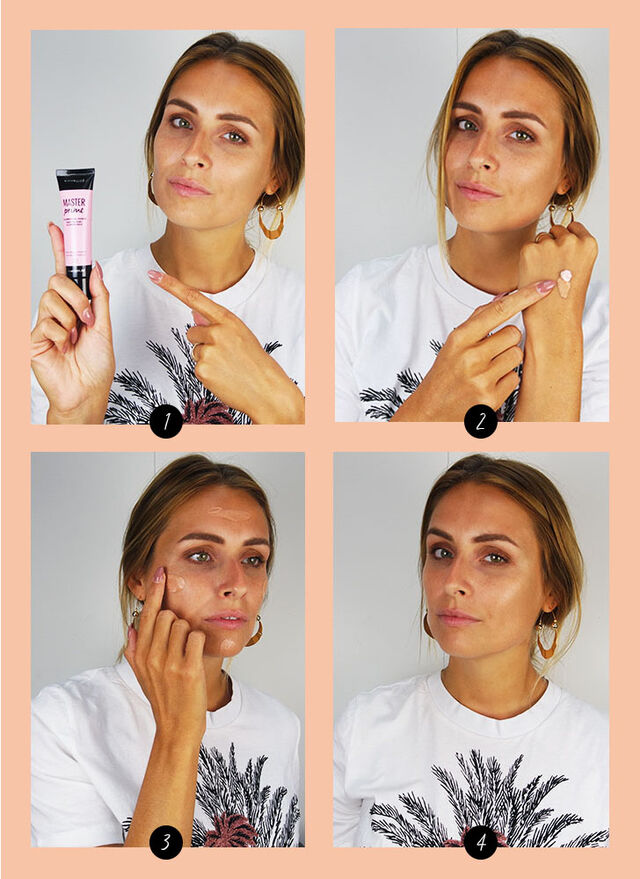 We zitten nu in die akelige tussenperiode waarbij de zomer eigenlijk is vertrokken maar de herfst ook nog niet officieel is begonnen. Hoe je dat oplost met je foundation? Zo: Gebruik een primer, zoals de Master Prime Illuminating primer van Maybelline die micro-parels bevat, voor een prachtige glow (1). Meng jouw foundation met een paar druppels primer op jouw hand (2). Verdeel het over je gezicht en gebruik je vingers om het in de huid te blenden (3). Het resultaat is een gezonde kleur en glow op deze regenachtige dagen (4). Dankzij de primer blijft jouw basis ook nog extra lang zitten.