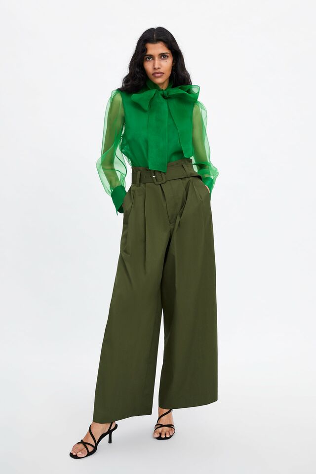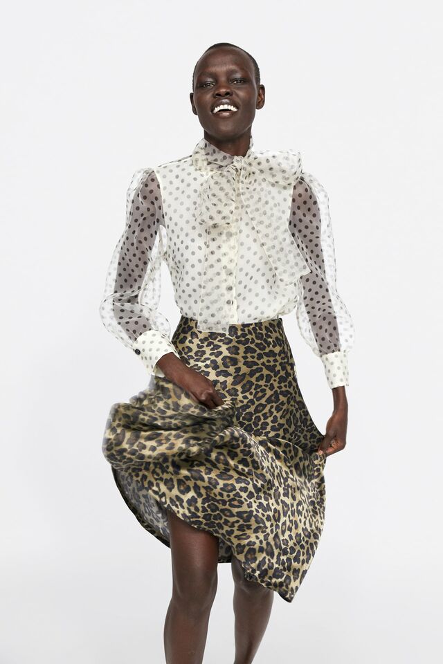 Deze blouse van Zara gaat op dit moment als een warme broodje de (digitale) toonbank over. Omdat het kledingstuk verkrijgbaar is in statement knalgroen maar er ook een variant is in gebroken wit met zwarte stippen, is er voor ieder wat wils. Menig influencer ging je voor en schafde deze geweldige top aan van Zara. Draag 'm gewoon los of met een blazer erover voor extra cachet. Succes gegarandeerd!