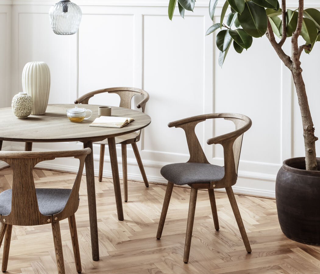 Je kunt ook voor deze tactiek gaan waar je juist de uitersten opzoekt qua houttint en textuur. Zet bijvoorbeeld een donkere walnoothouten tafel gerust op een lichte eikenhouten vloer. Het lijkt totaal niet op elkaar en past daarom juist heel goed samen.