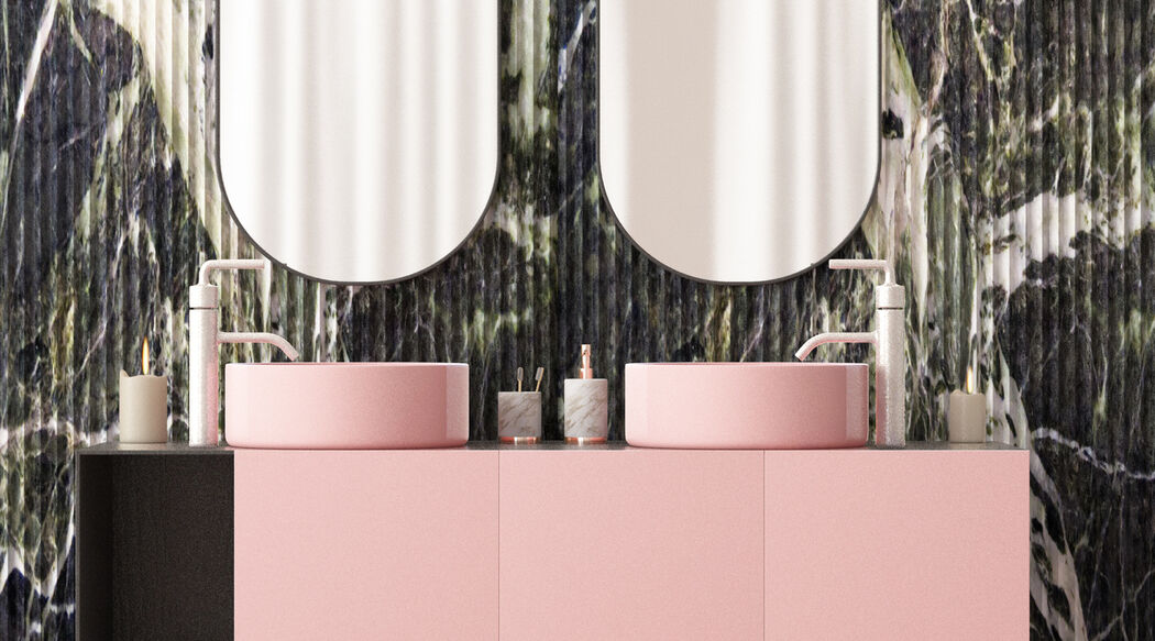 Loop een doorsnee badkamer in Nederland binnen en je zult merken dat je (zeer waarschijnlijk) in een spierwitte ruimte staat. De vloer is vaak voorzien van grijze tegels en de enige kleuraccenten die je er kan vinden, zijn die van het zeeppompje en de flesjes beautyproducten die er staan.