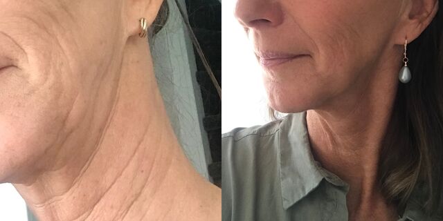 Sylvia: "Ik heb de Silk'n FaceTite Ritual 10 weken uitgeprobeerd en het apparaat twee keer per week gebruikt. Het is een handzaam apparaat met een duidelijke gebruiksaanwijzing. Belangrijk is om een klein beetje gel te gebruiken, anders werkt het apparaat niet. Ik begon op stand 1 maar kon al snel verder naar stand 5 (de maximum stand). Af en toe voelt dat heel warm, maar dan kun je 'm even van je huid afhalen en dan weer over de plek bewegen die je wilt behandelen voor vijftien minuten. Ik deed de behandeling vaak terwijl ik tv keek, dan is het een kleine moeite. De eerste weken zag ik geen resultaat, maar langzaamaan had ik het idee dat de rimpels wat gingen verzachten. Vooral die op mijn wangen. In mijn nek heb ik behoorlijk diepe rimpels en daar is het resultaat minder, ik zie wel iets verbetering maar ik denk dat dit een kwestie wordt van langer het apparaat gebruiken om een beter resultaat te krijgen. Mijn huid ziet er vitaler uit, de poriën zijn fijner geworden en daardoor lijkt mijn huid jonger. Het is prettig om dit in de spiegel te bekijken. Mijn jongste dochter heeft gezegd (zonder dat zij wist dat ik de Silk'n gebruikte): "Mam, wat zie je er goed uit". En dat is natuurlijk altijd leuk om te horen. Bovendien geeft er beter en frisser uitzien meer zelfvertrouwen."