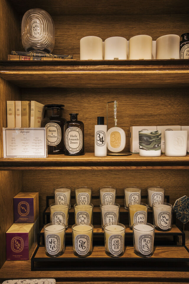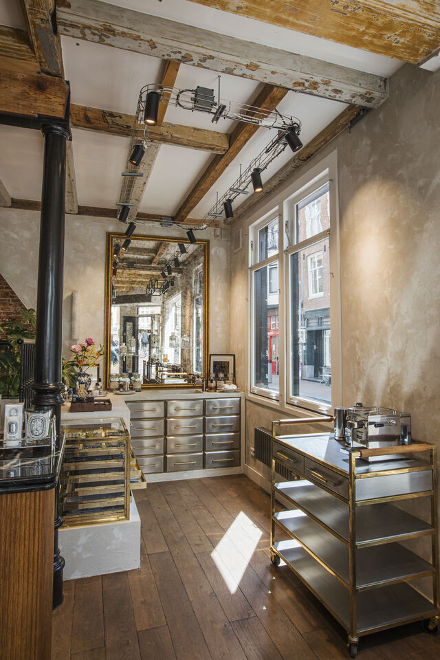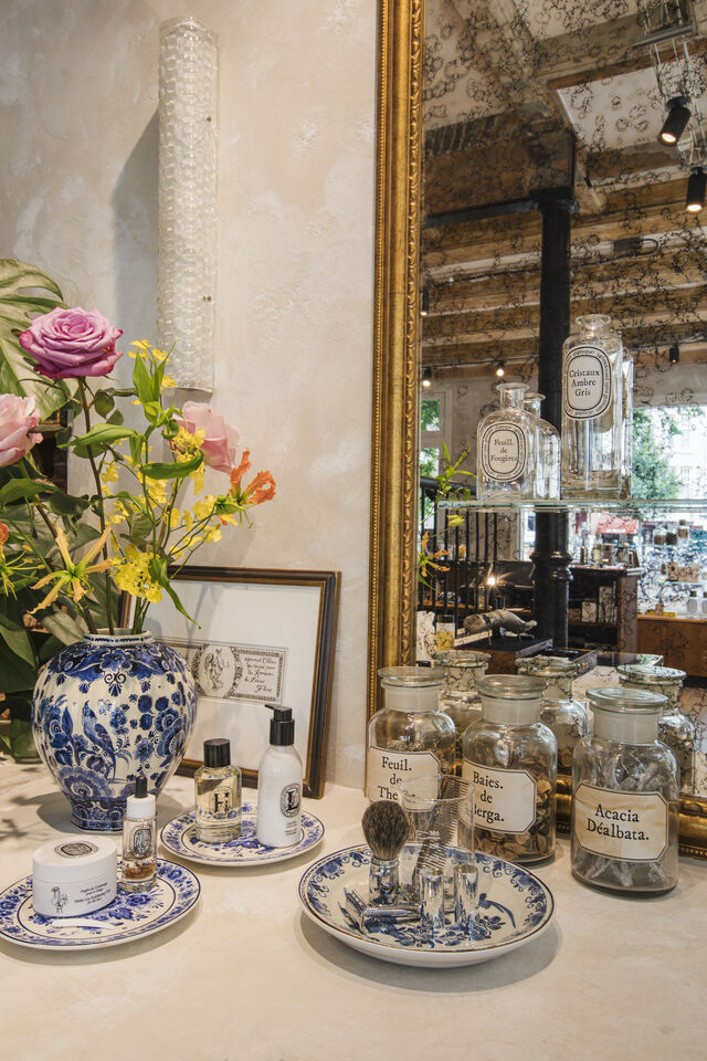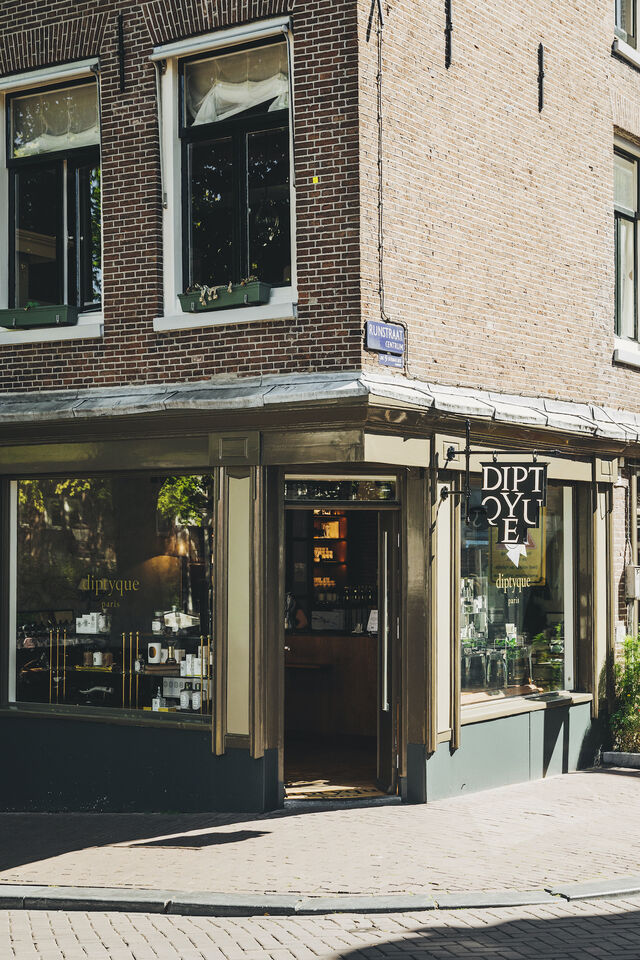 Op de Prinsengracht in Amsterdam - op nummer 531 om precies te zijn - vind je een prachtige Diptyque store die niet onder doet voor winkels in Parijs. Dankzij de bijzondere inrichting waan jij je even in de Franse hoofdstad maar dan in een typisch Oudhollands pand. Bakstenen zijn gecombineerd met messing, gietijzer en een parketvloer van natuurlijk eikenhout. Overal in de winkel vind je bijzondere objecten - spullen die thuishoren in een curiositeitenkabinet. Eén van de pronkstukken in de ruimte is de brede houten kast met een zwart marmeren blad waar je de parfums van Diptyque op terugvindt.