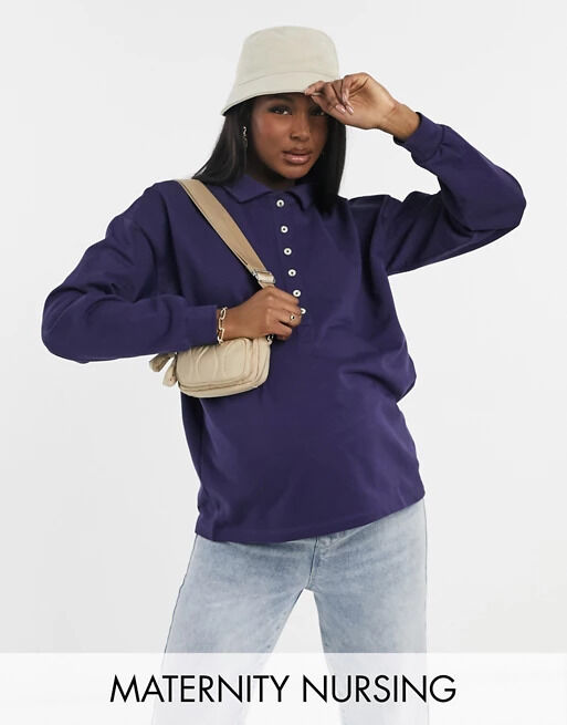 Polo-sweatshirt met borstvoedingsfunctie in donkerblauw bij ASOS.com