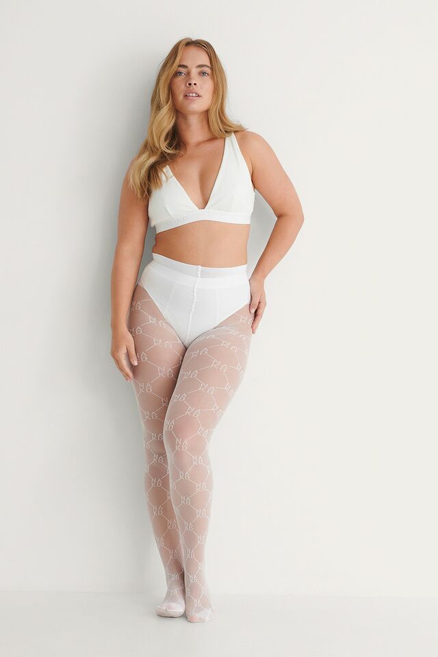 De witte panty met een design of print kan er heel chic uitzien. Combineer het met een lange witte blazer en een tailleriem. Pumps met enkelbandjes zijn passende schoenen voor deze elegante look.