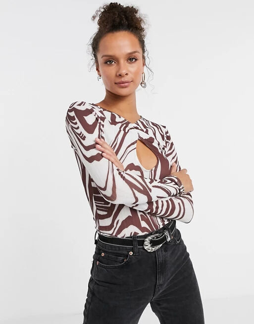 Top met uitsnijding aan de voorkant en golvende print in chocoladebruin bij ASOS.com