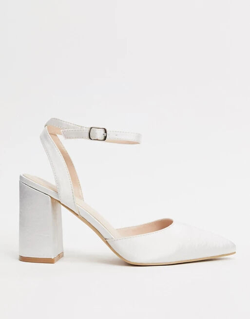 Bruidsschoenen met blokhak van ivoorwit satijn bij ASOS.com
