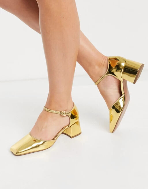Mary Jane halfhoge hakken met vierkante neus in goud