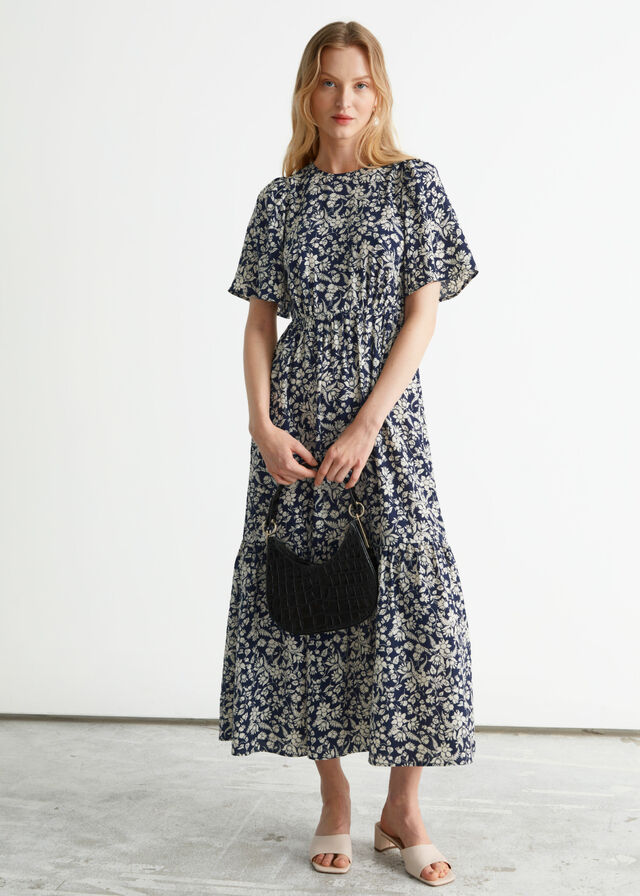 Printed puff sleeve maxi dress in blue floral bij Stories.com