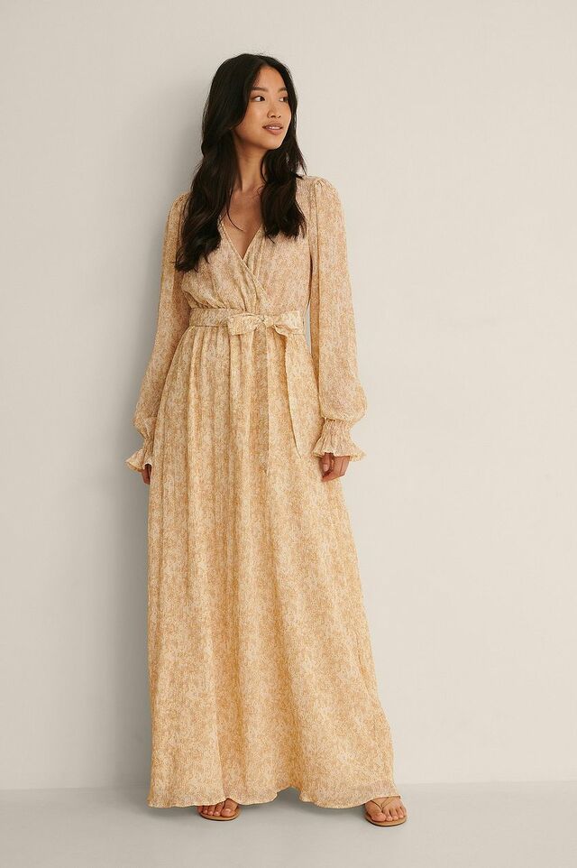 Maxi-jurk met V-hals in beige bij Na-kd.com