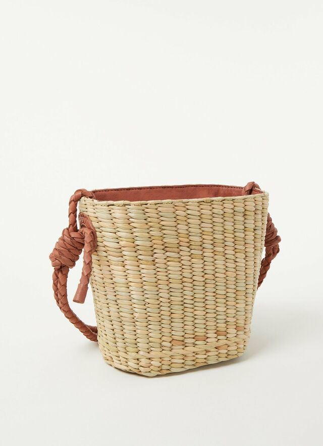 Lyra Mini schoudertas van stro met leren details bij DeBijenkorf.com