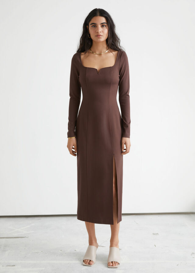 Fitted sweetheart neck midi dress bij Na-kd.com