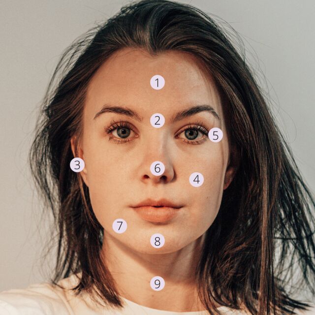 De zone op jouw gezicht waar de meeste van jouw puistjes ontstaan, kan iets zeggen over je gezondheid, je levensstijl of over jouw gewoontes. Ben je benieuwd wat jouw puistjeszone over je zegt en wat jij er tegen kan doen? Bekijk dan de volgende afbeelding en scrol verder naar de juiste zone.