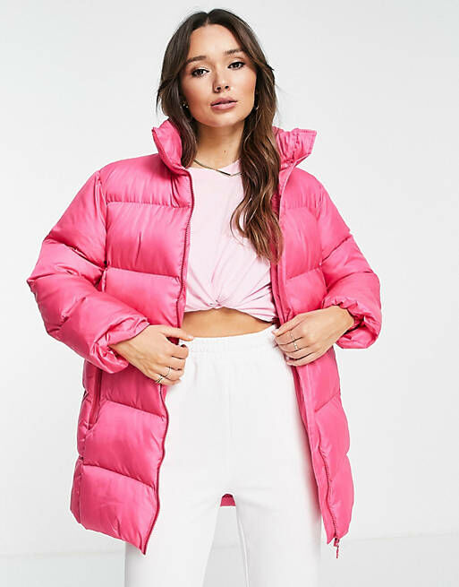 Liquorish - Gewatteerde jas met lange pasvorm in felroze bij ASOS.com