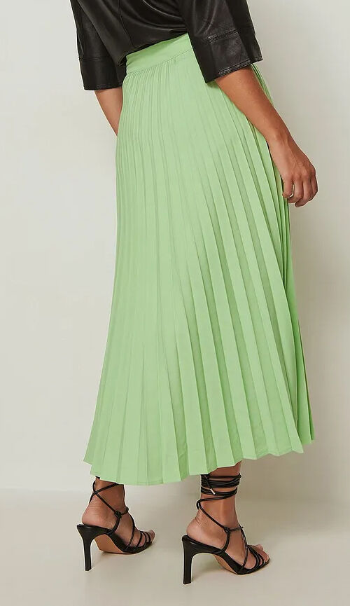 Tot slot hebben we nog een casual chic outfit voor liefhebbers van rokjesdag! Vooral op de warme dagen draag je liever iets luchtigs. Een lange rok is dan een heel fijne uitkomst voor op kantoor. Deze lichtgroene rok schreeuwt gewoon ‘lente’! Combineer het vervolgens met een vrolijke blouse en je bent ready to go.