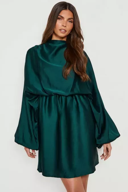 Net als bordeauxrood is donkergroen ook een kleur die mooi bij de herfst past. In combinatie met een satijnen stof is dit een prachtige outfitkeuze voor een bruiloft in de herfst.