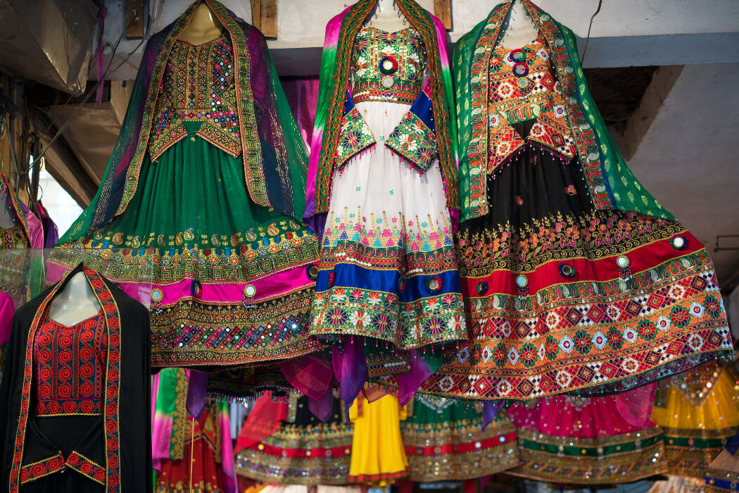 Veel vrouwen in Afghanistan dragen de westerse trouwjurk in het groen. De kleur staat namelijk voor rijkdom en geluk. Toch gaan heel veel bruiden tegenwoordig voor de traditionele Afghaanse jurken. De jurken zijn enorm kleurrijk. Het design bestaat uit verschillende felle stoffen, spiegeltjes, knoopjes enzovoort. Kortom: alles wat opvalt!