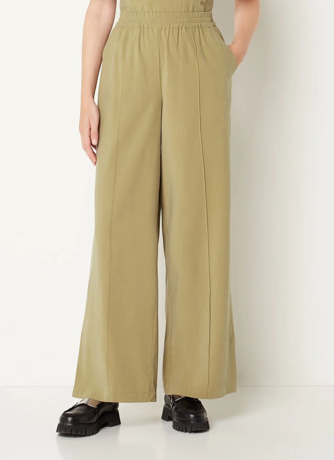 Is een pantalon die comfortabel zit voor jou een prioriteit? Dan is deze van Gestuz ideaal. Deze heeft namelijk een elastische band om de taille, hierdoor zit de broek nooit te strak om je buik. Daarnaast heeft deze donkergroene pantalon een wide leg design en een split onderaan de broekspijpen. Deze is ook erg geschikt voor de warmere seizoenen!