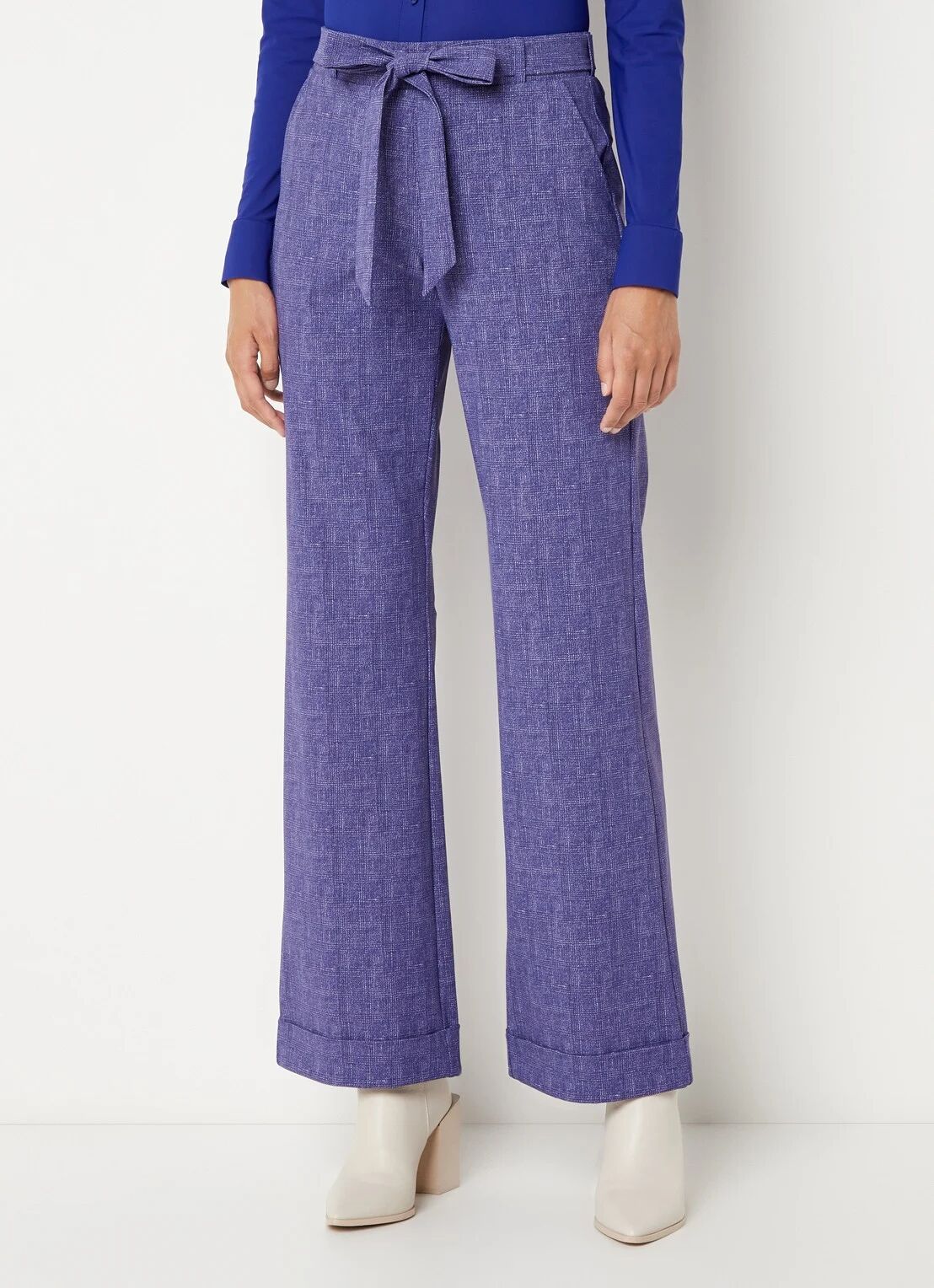 Een pantalon hoeft niet altijd zwart en saai te zijn. Deze prachtige mid waist pantalon van Studio Anneloes heeft een schitterende paarse kleur en een sierlijke strik aan de voorkant. Ideaal voor als je een statement wil maken met je kantoorlook.