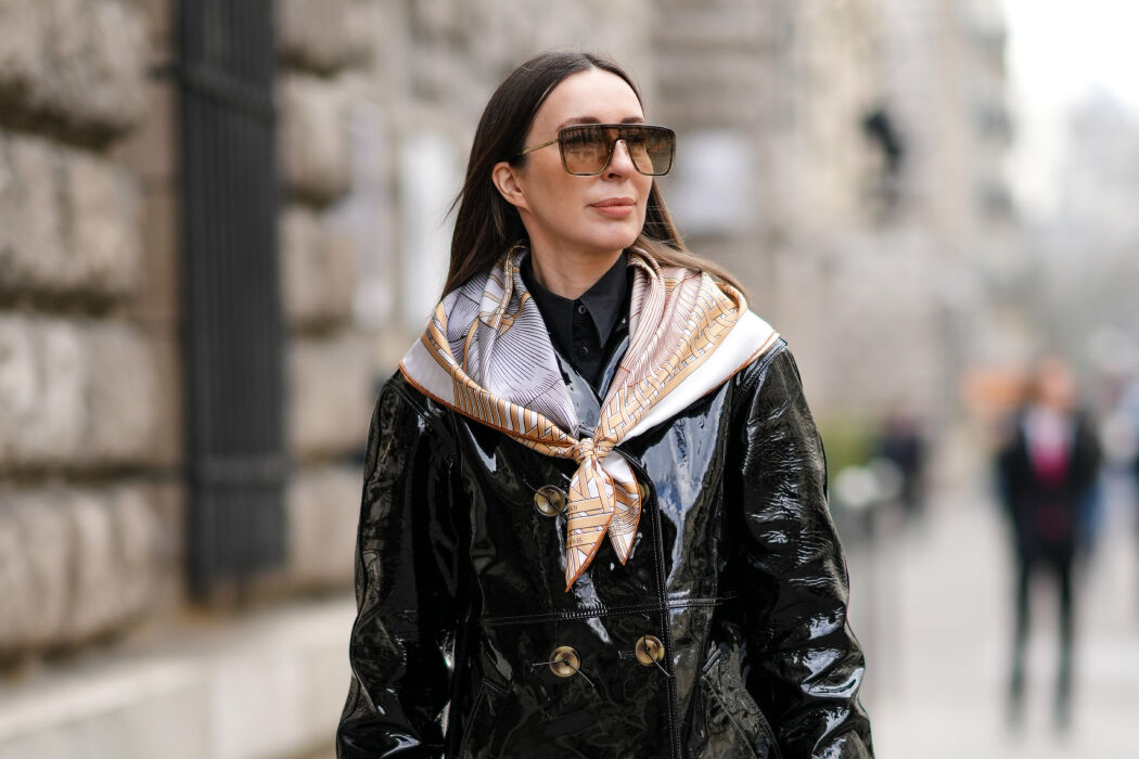 Dan hebben we nog de hoofdsjaal, die je vaak voorbij ziet komen bij Parisiennes. Als je ergens inspiratie vandaan moet halen voor je stijlvolle outfit, dan zit je in Parijs altijd goed. Zo'n hoofdsjaal is handig wanneer het onverwachts begint te regenen en je dus geen paraplu meehebt. Knoop in dat geval snel de sjaal om je hoofd en zet het sjaaltje onder je kin vast met de sjaalring. Schuif de losse uiteindes van je sjaal naar achteren en voilà, op naar de Eiffeltoren!