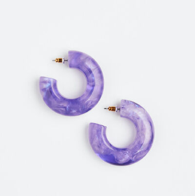 Dan hebben we nog een paar hippe, paarse creolen met een toffe marmer look. Match de opvallende, kleurrijke oorbellen met je basic outfit om het wat op te spicen. Wedden dat iedereen wordt weggeblazen door je look?