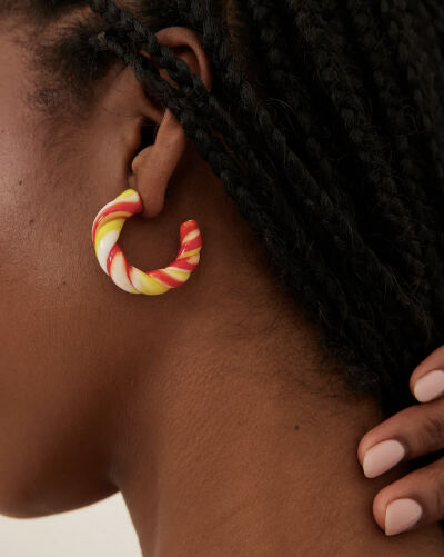 Misschien zie je het niet goed, maar deze oorbellen hebben toch zeker wat weg van een snoepje. Zuurstok, anyone? De kleurrijke oorbellen passen wel erg goed bij de modetrends van de komende lente.
