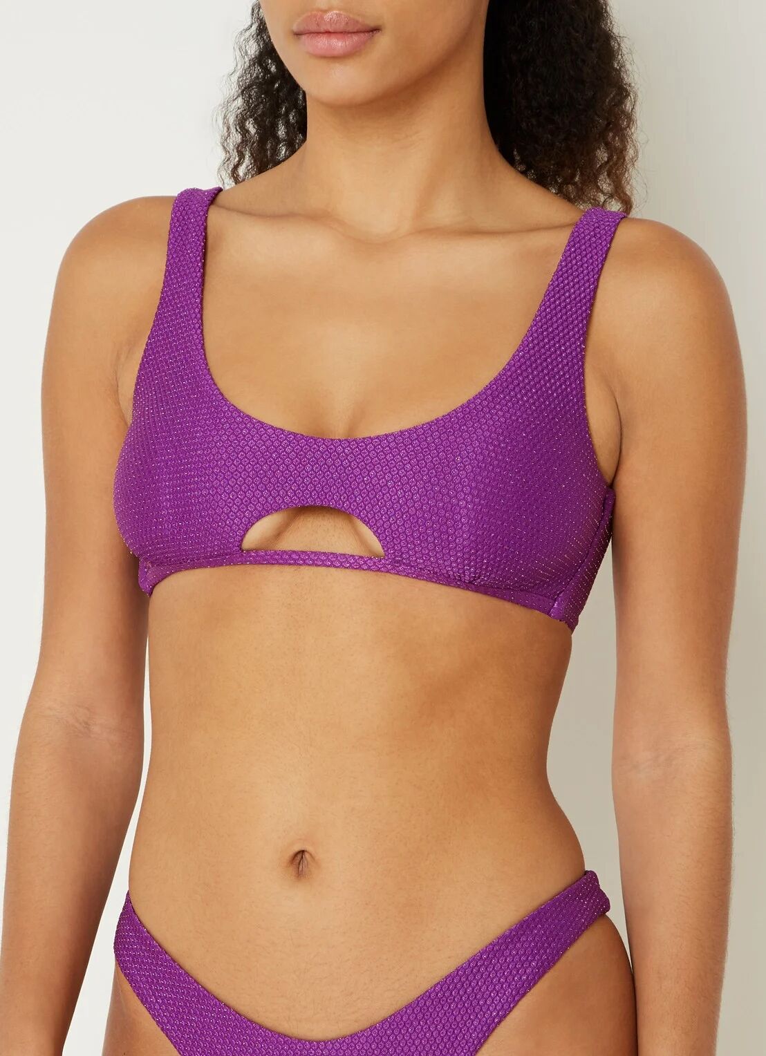 Trendy bikinitops worden steeds kleiner en kleiner. Voor dames met grotere borsten is dit niet altijd even ideaal, je hebt natuurlijk wel een beetje support nodig. Dit prachtige paarse bikinitopje bedekt jouw borsten en geeft ze de juiste support maar heeft toch een kleine sexy twist. Door de cut-out aan de onderkant van het topje geeft deze bikini je een beetje underboob, wat ook erg in is op dit moment.