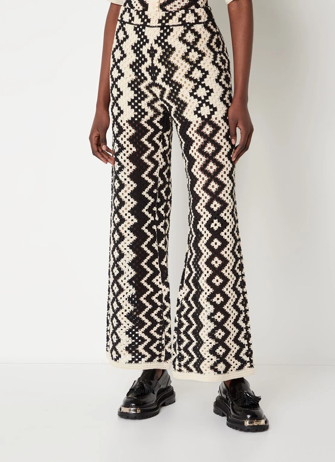 Crochet is niet alleen leuk voor het bovenlichaam. Je kan namelijk ook een gehaakte broek dragen! Deze broek van Sandra is semi-doorschijnend. Dit maakt het een leuke broek om te dragen als beach cover up of voor warme zomeravonden.
