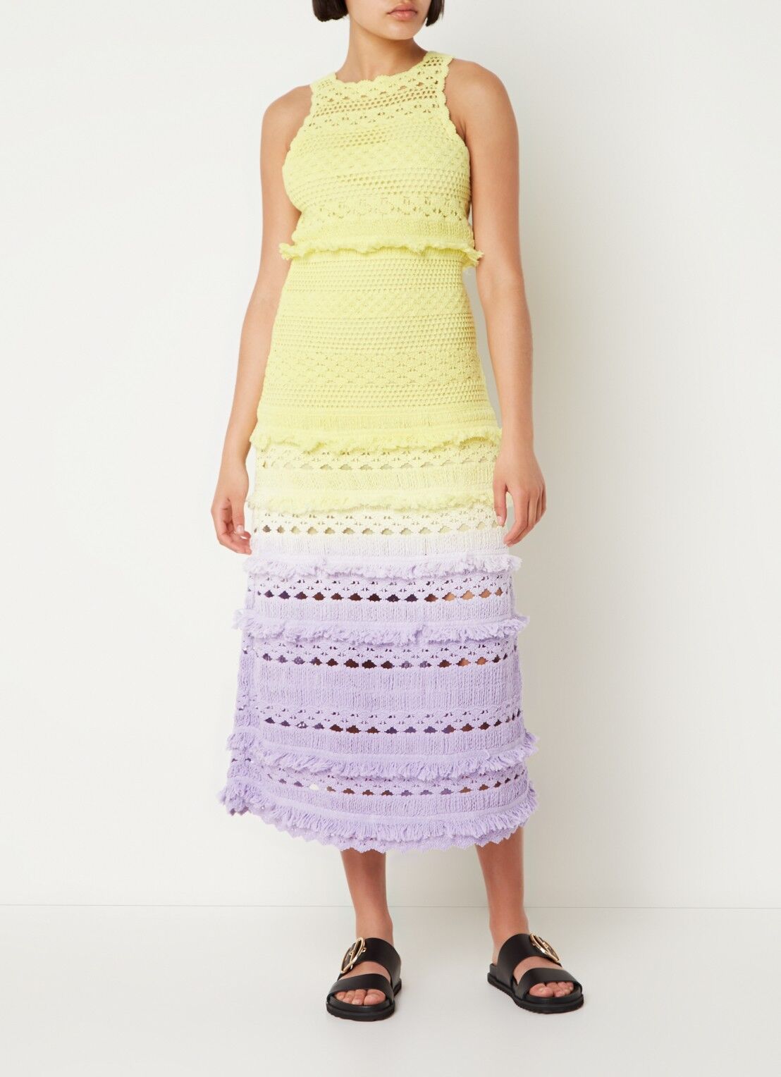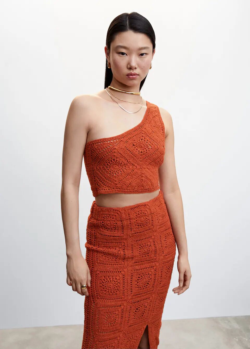 Voor de liefhebbers van asymmetrische items, hebben we dit prachtige topje van Mango. Dit crochet topje kun je op een super stoere manier stylen met jeans en sneakers, maar je kan het ook dragen naar een fancy diner door deze te combineren met de bijpassende rok en een paar hakken.