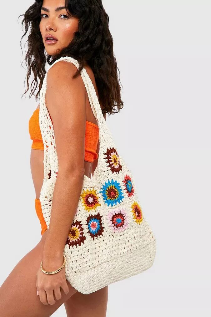 Tot nu toe hebben we het vooral over gehaakte kledingitems gehad. Maar gehaakte accessoires zijn ook een ontzettend toffe toevoeging aan je outfit. Deze tote bag van Boohoo is perfect om mee te nemen naar het strand of naar een picknick in het park.