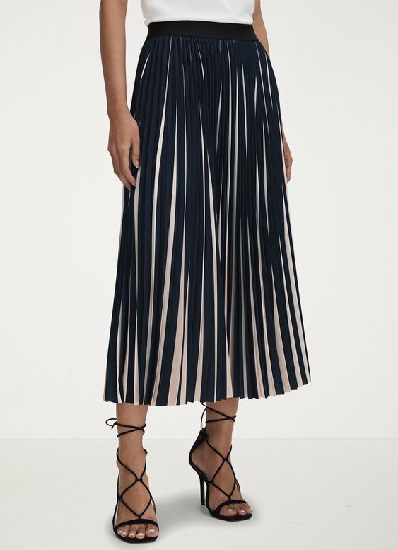Tot slot konden we de rok natuurlijk niet laten liggen. Deze rok heeft geen klassiek streepje en pakt de look dus net iets anders aan. Combineer de rok met je favoriete hakken voor een elegante look.