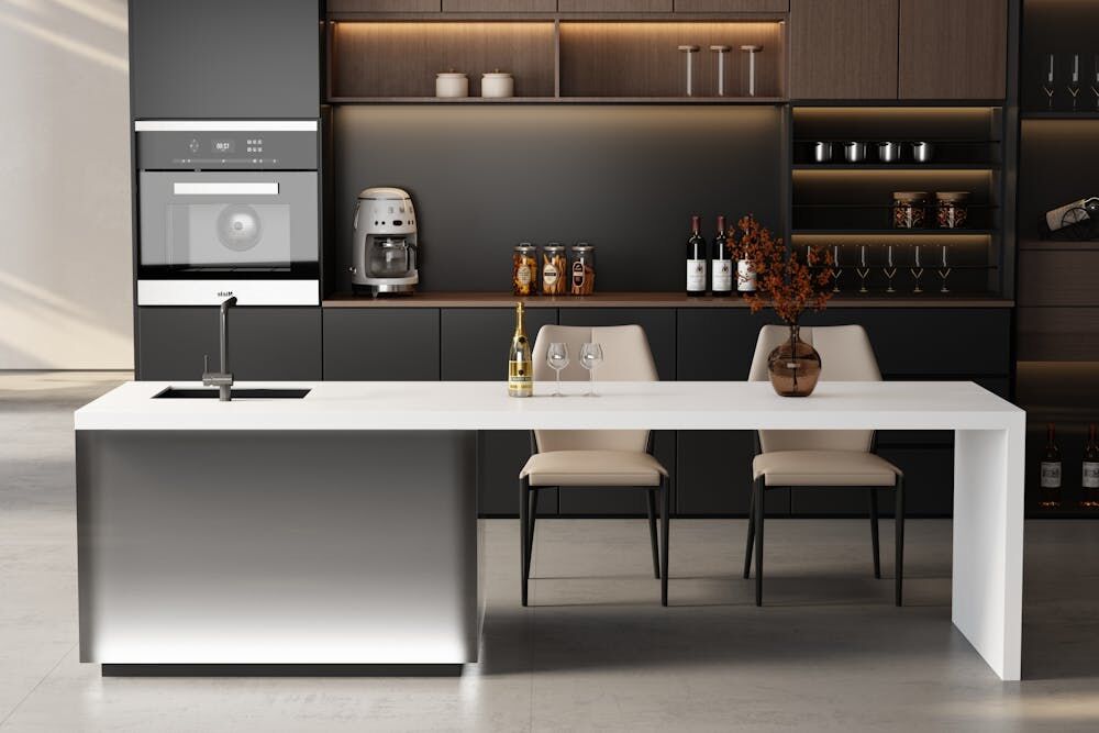 Heb je er al eens een keer over nagedacht? Een kookeiland draagt voor een erg groot deel bij aan een open en ruimtelijke uitstraling van je keuken. In tegenstelling tot een traditionele keukenopstelling met een afgesloten werkhoek, zorgt een eiland ervoor dat de ruimte meer verbonden voelt met de rest van het huis. Dit is ideaal voor open keukens die overlopen in de woonkamer. Je hebt niet alleen meer bewegingsvrijheid, maar het zorgt ook voor een luxere en modernere uitstraling.